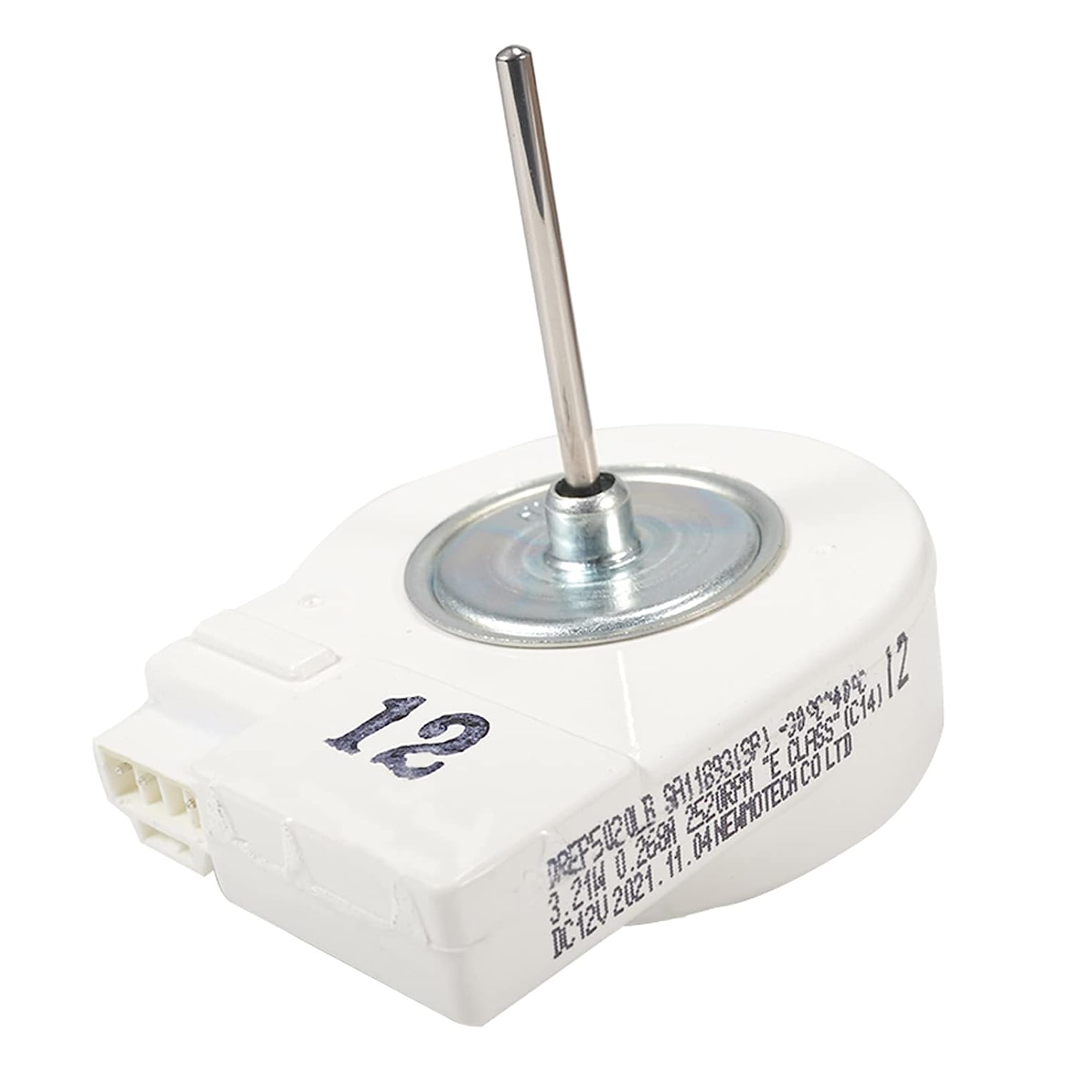 Description: This Fan Motor is a replacement part for specific Samsung refrigerator models. It is essential for circulating air throughout the refrigerator and freezer compartments, ensuring that the temperature is evenly distributed and maintained at the set levels. This motor powers the fan that helps to cool the evaporator coils and dissipate heat, which is vital for the appliance's cooling efficiency.