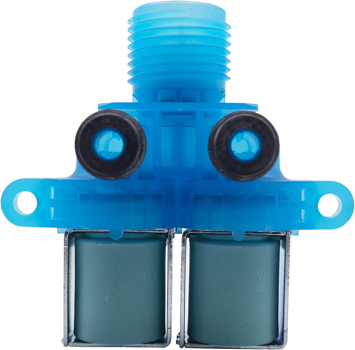 Description: This Water Inlet Valve is a replacement part for specific Kenmore, Maytag, Whirlpool washing machine models. It controls the flow of water into the washer tub at designated stages in the washing process. Water enters through the valve inlet and is distributed to internal components like the detergent dispenser, water pipes, and sump hoses. Common causes of a bad valve can include mineral scale buildup inhibiting proper flow regulation over time, or cracks and leaks from wear and tear on rubber gaskets and seals.