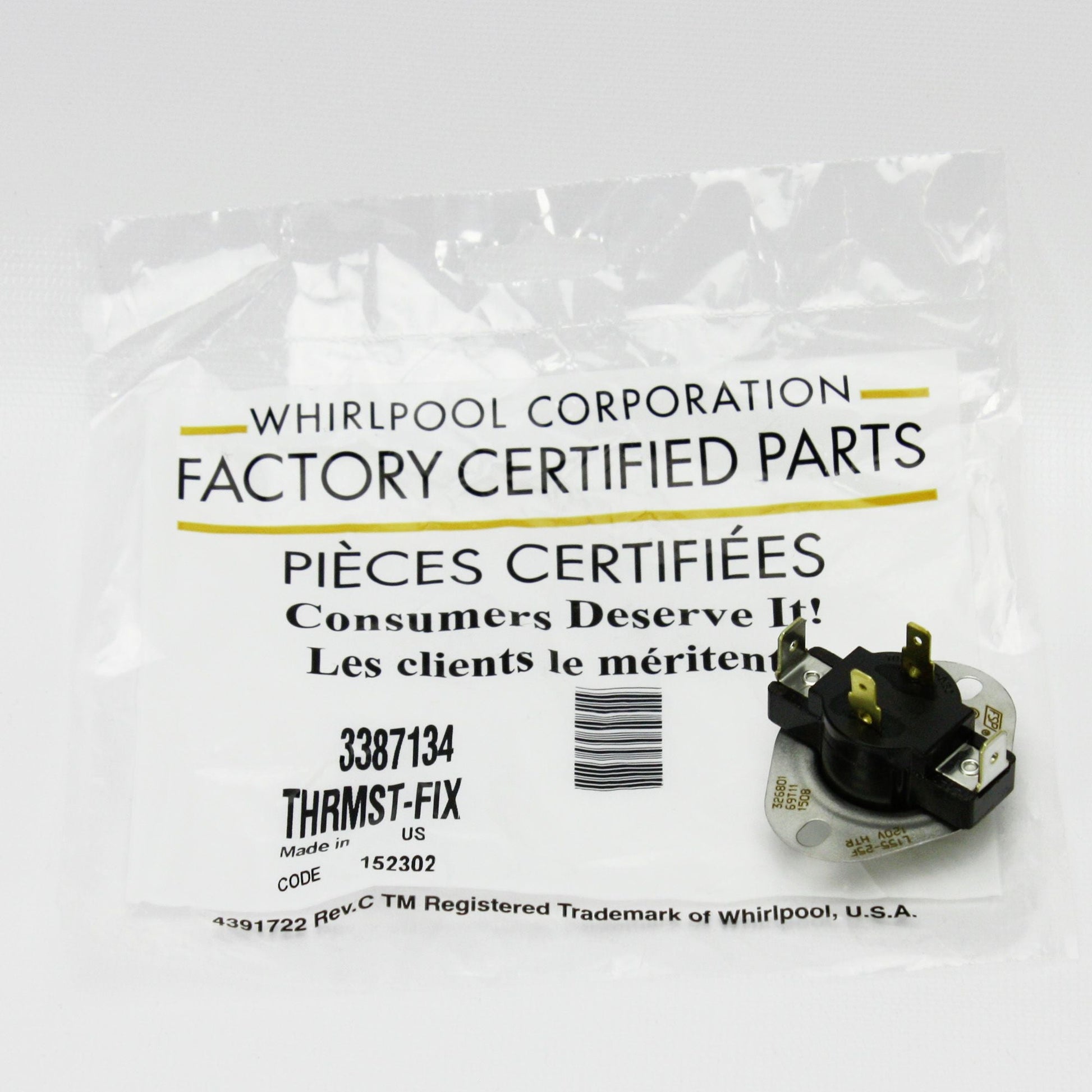 Genuine Whirlpool WP3387134 Dryer Cycling Thermostat - Compatible with Whirlpool, Kenmore, Maytag, KitchenAid