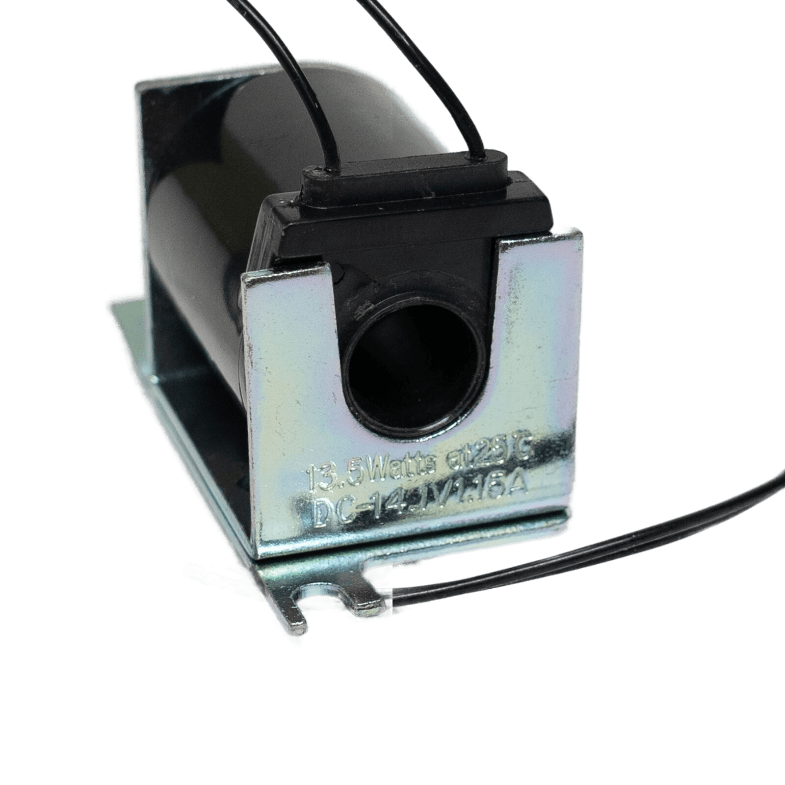 🔥 Specifications: Solenoid assembly, 115V, 1.15A, 60Hz, 13.5W, black/white/gray plastic and metal, solenoid and bracket dimensions ~1-5/8"L x 1-3/8"W x 2-15/16"H, harness and plug ~12-3/4"L, actuator ~2"L x 1/2" diameter, includes two mounting screws.